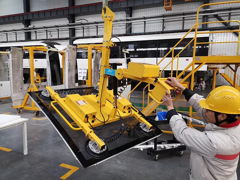 中车浦镇庞巴迪运输系统有限公司成立于2014年,由中车南京浦镇车辆有限公司和庞巴迪运输集团共同出资组建,属于中车南京浦镇车辆有限公司子公司,是国内第一家专门从事单轨和APM胶轮轨道交通车辆及系统设计、生产、集成与销售的**公司,市场范围覆盖除欧洲、美洲外的全球市场。随着公司生产线及技术不断的升级更新,为更好的提升效率,中车浦镇庞巴迪PBTS通过市场考察及全面了解,最终引入了孚来迪公司对的吸盘吊具,主要应用于吸高铁前档玻璃。